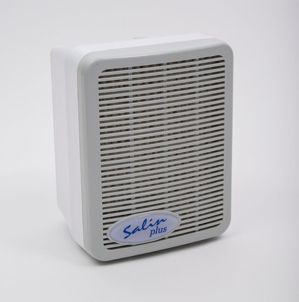 Salin Plus är en kompakt och energieffektiv apparat (10 W), anpassad för sovrummet. Den sprider små torra saltpartiklar som du andras in när du sover. Både Salin Plus och Salin S-2 har en justerbar och tystlåten fläkt samt ett dubbelverkande utbytbart filter.
